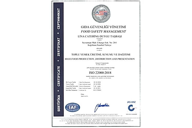 Lezzetli yemeğin temel prensibi kaliteli malzemeden geçer” esasına dayanarak çorbalarımız ve yemeklerimizde en yüksek lezzeti yakalamak için dana kemik suyu kullanıyor, toplu yemek üretiminde pek kullanılmayan ama bizim yemeklerimizden eksik etmediğimiz tereyağı ve zeytinyağını da ilave ediyoruz. Bağışıklığımızı ekstra güçlü tutmamız gereken hassas dönemden geçiyoruz bu sebeple biz Lina Catering ailesi olarak sunduğumuz her menüde doğallığı ve tazeliği koruyarak toplum sağlığına katkıda bulunabilmek için üzerimize düşen sorumluluğu hakkıyla yerine getirmek için durmadan çalışıyoruz.